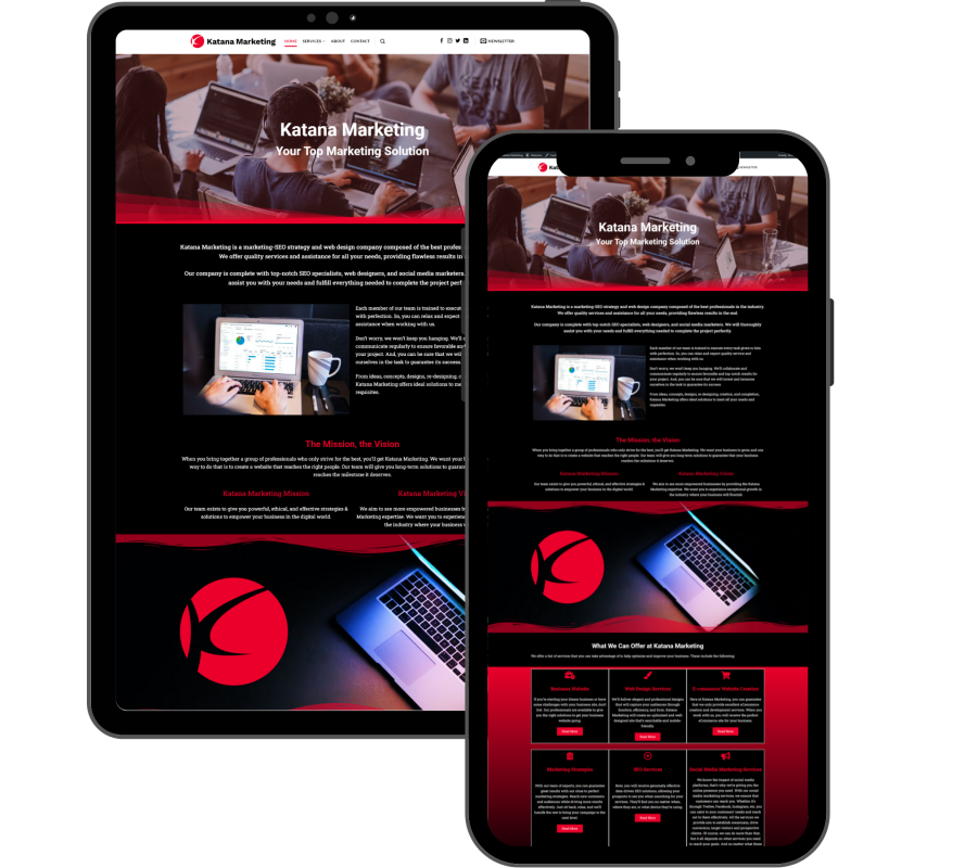 Katana Marketing designs, creates, and produces business websites that are made specifically for your target audience and goals. A business site offers you a trustworthy digital presence while meeting your needs based on quality, efficiency, branding.